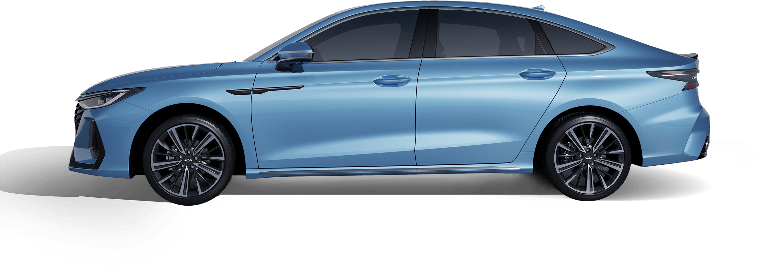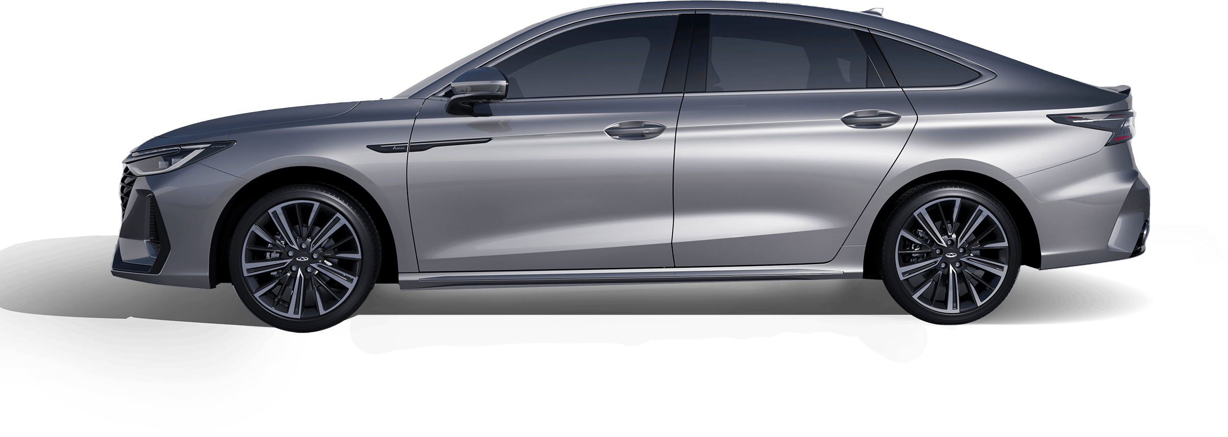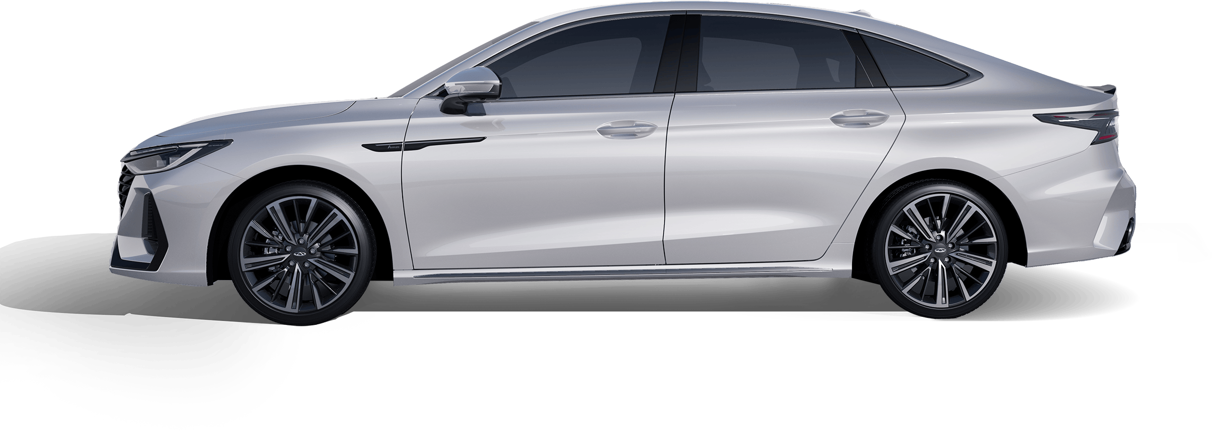 Like liquid metal rippling in the tide, transforming industrial precision into fluid light and shadow. The finish reflects a premium mercurial luster, lending the sedan a sharp yet graceful flight silhouette.