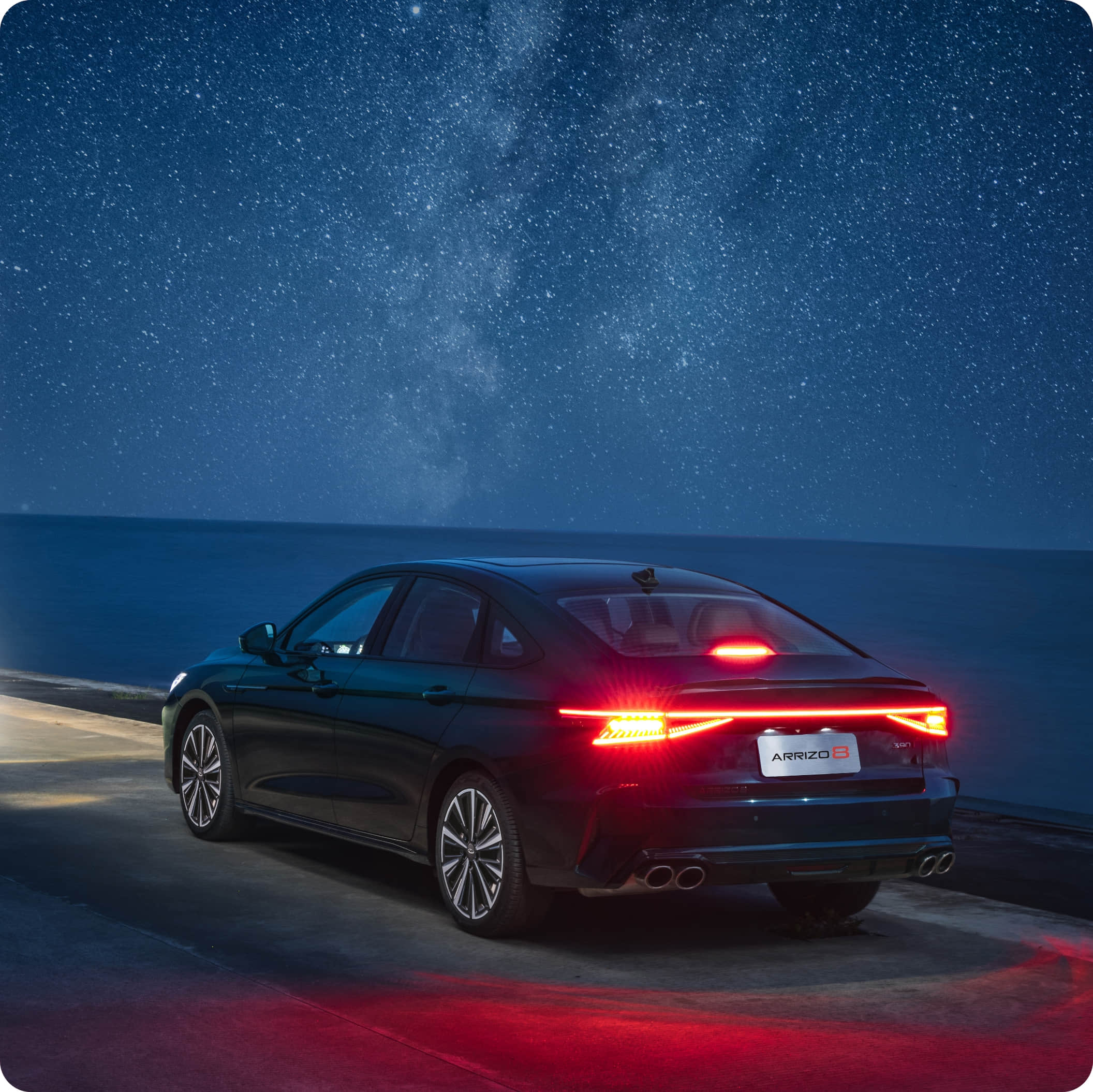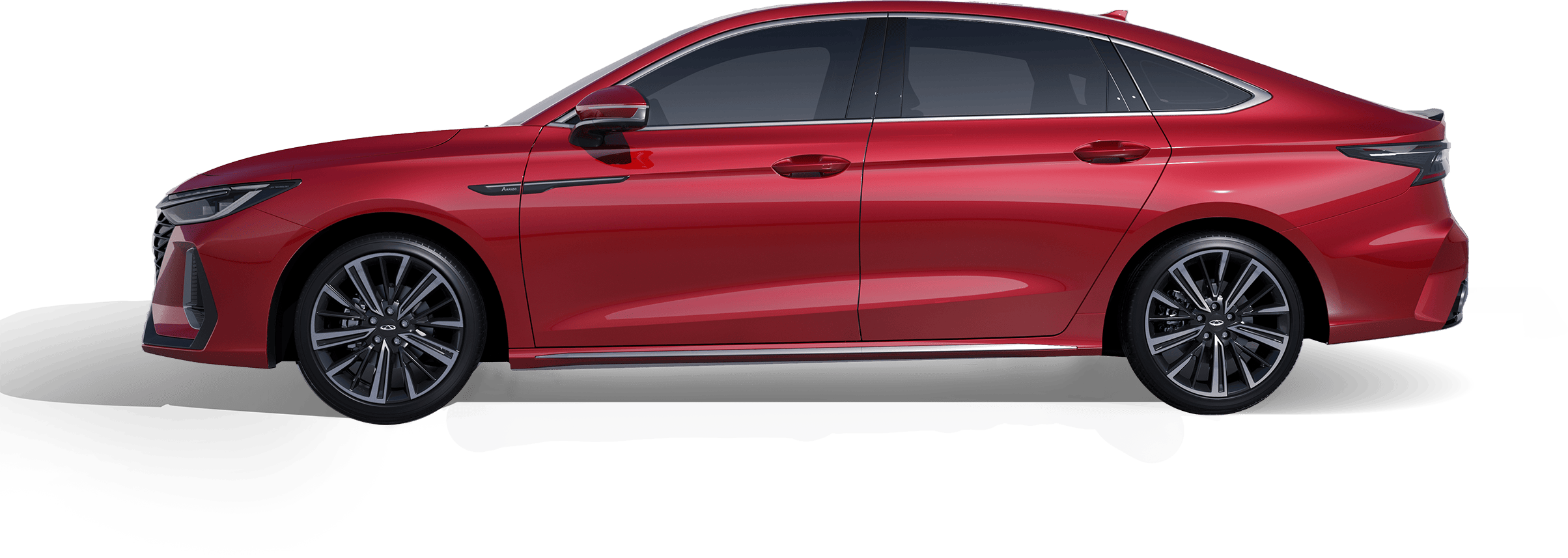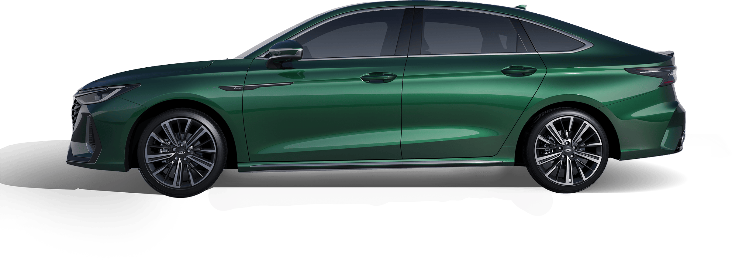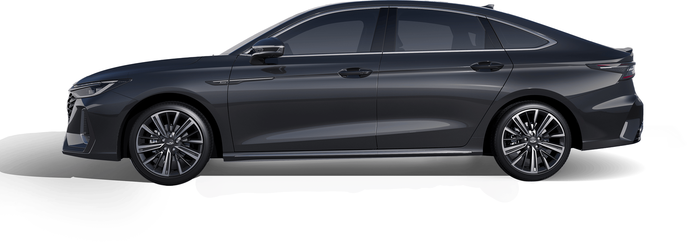 Like liquid metal rippling in the tide, transforming industrial precision into fluid light and shadow. The finish reflects a premium mercurial luster, lending the sedan a sharp yet graceful flight silhouette.