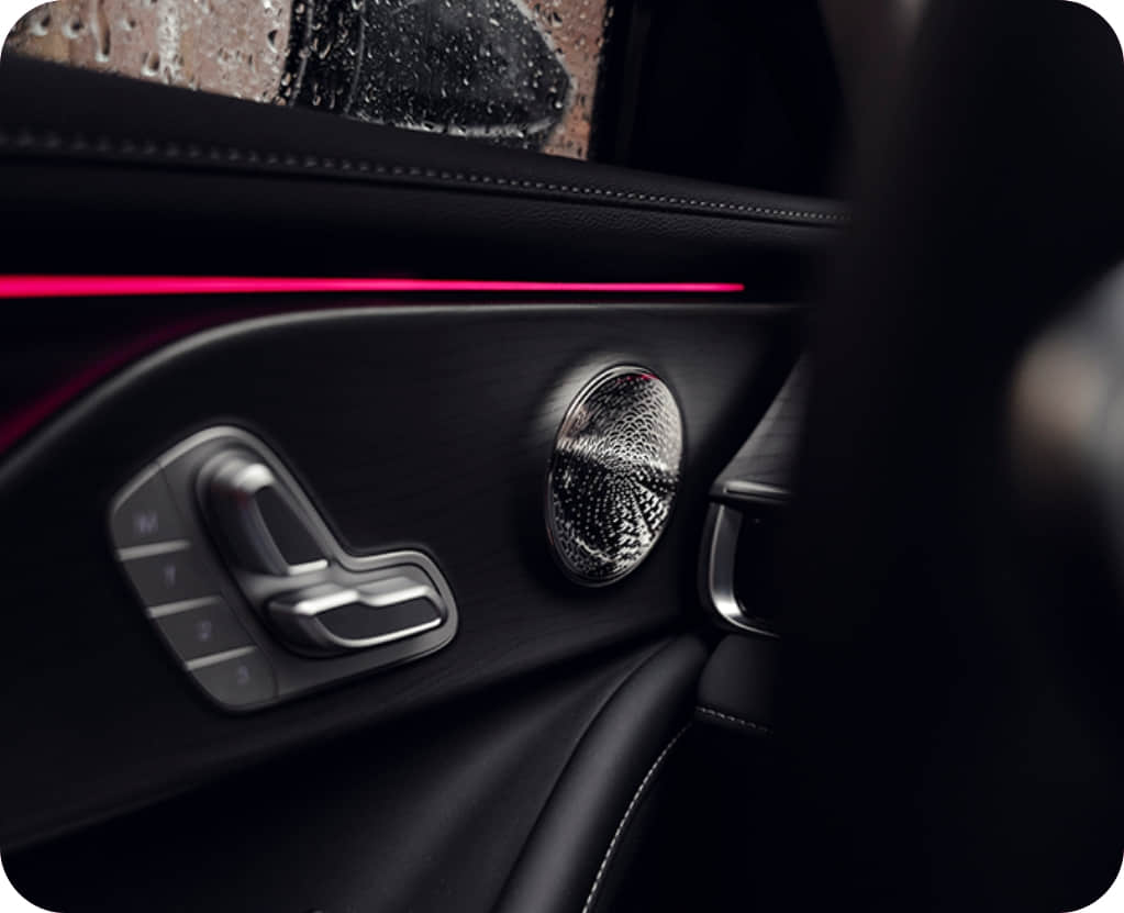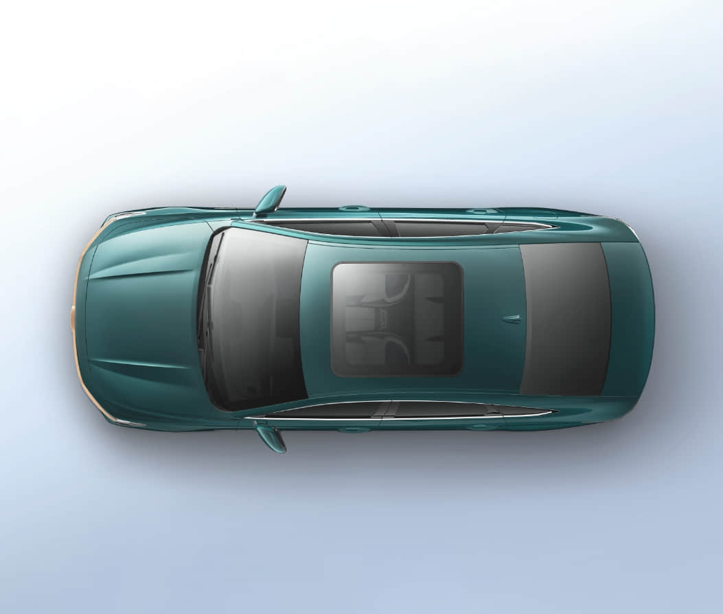 As deep as a dark pool at midnight—pure and unfathomable. Fine crystalline particles within the finish act like starlight dancing on water, flawlessly defining the sedan's elegant silhouette.
